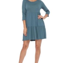 Everyone loves this dress! The tiered silhouette and soft, comfy fabric make this dress flatter numerous body types. The color is classy, with the length being modest and 3/4 sleeves make it great year-round.