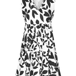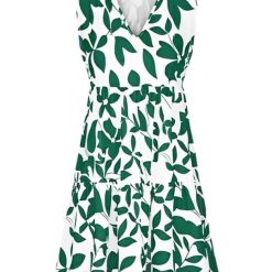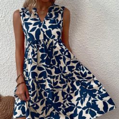 The sleeveless design is perfect for warm days, while the high waistline and flounce hem create a flattering silhouette. The notched neckline adds a touch of relaxed charm, and the ruffle hem details further enhance the boho-chic vibe.