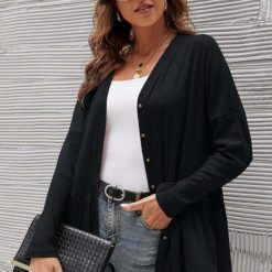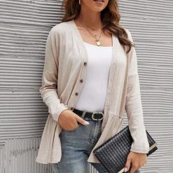 This V-neck peplum top is very versatile thanks to its cotton blend and ruffled hemline. This lightweight top, which can also be worn as a cardigan, will give your wardrobe a more casual feel.