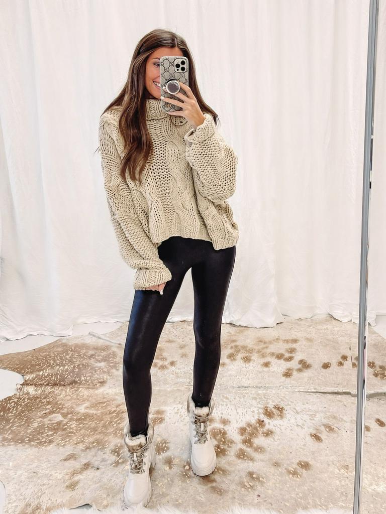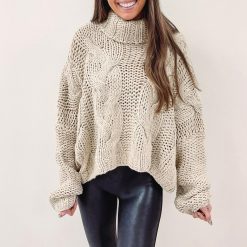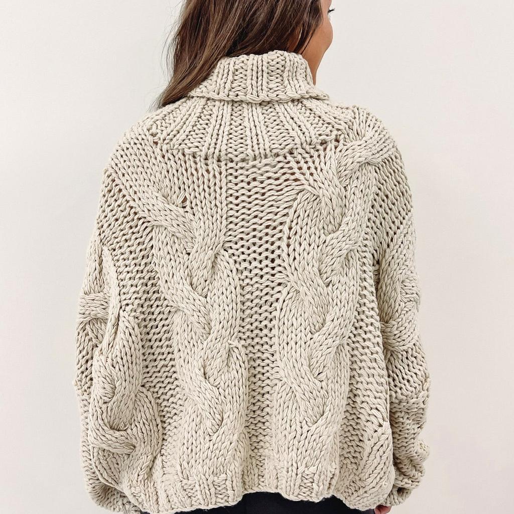 – Handmade turtleneck cable knit sweater
