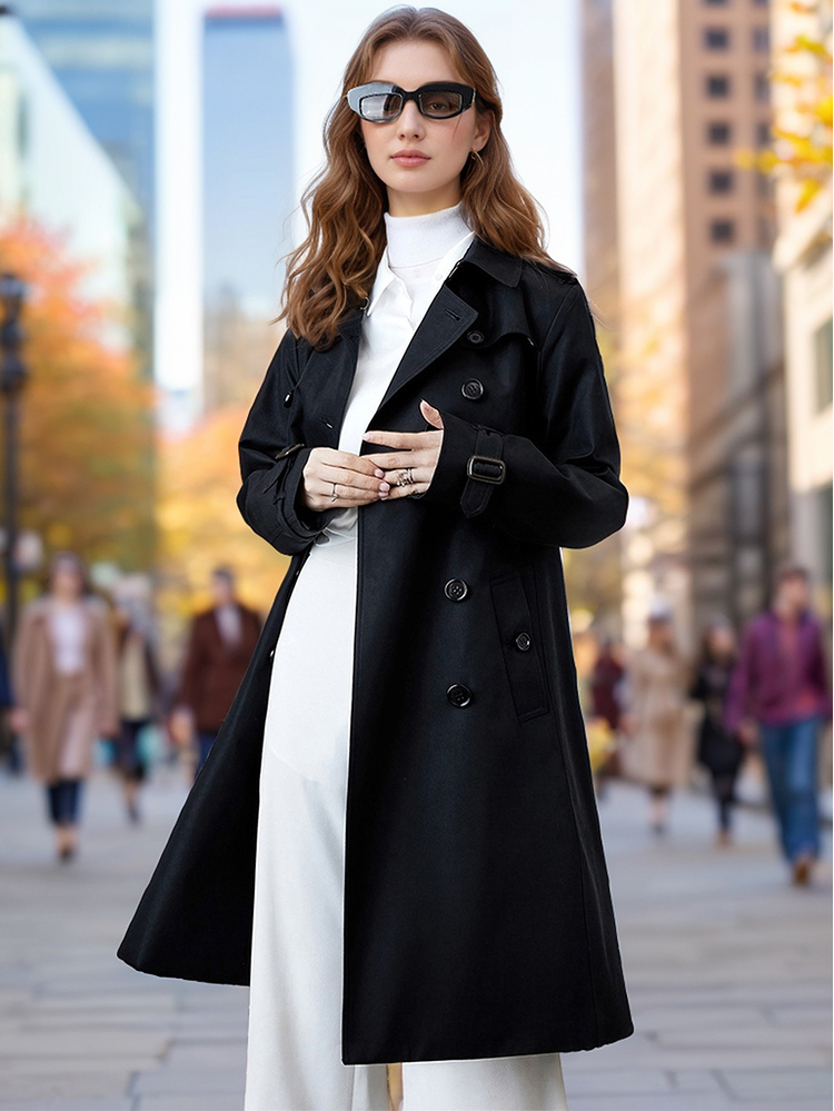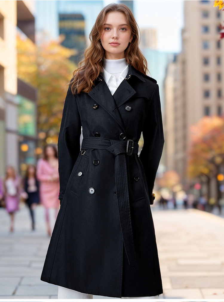 Popular Trench Coat Women 2024 Autumn And Winter New Mid-Length Coat Black