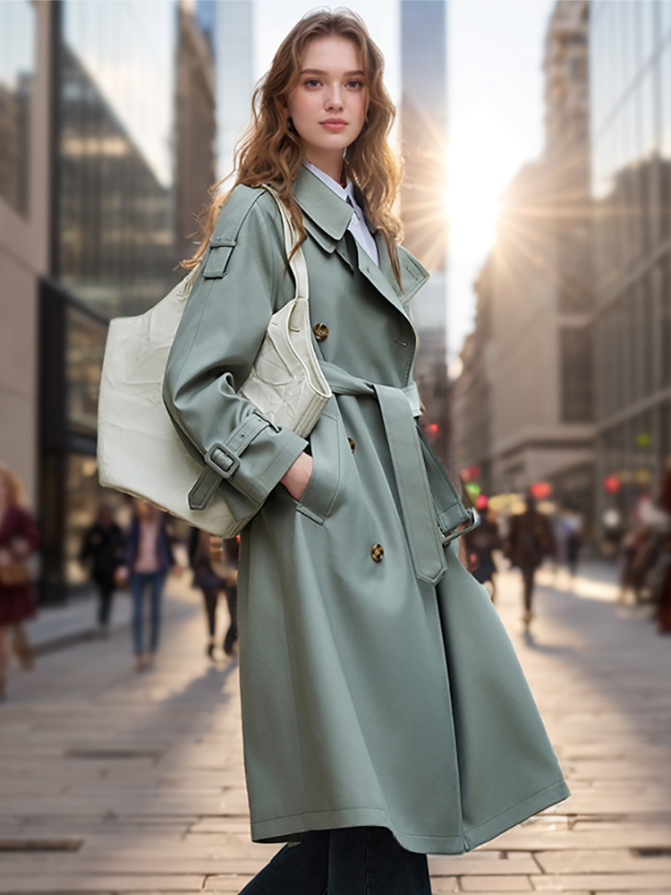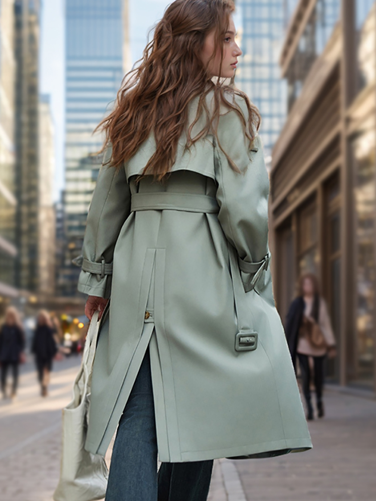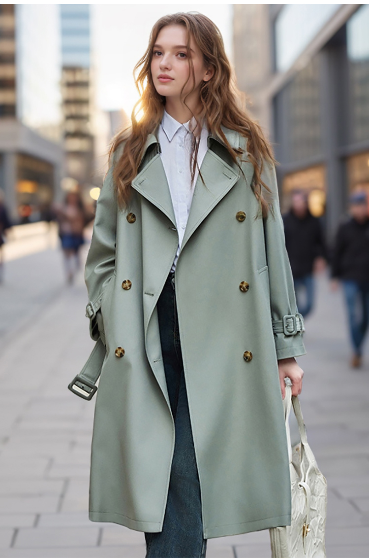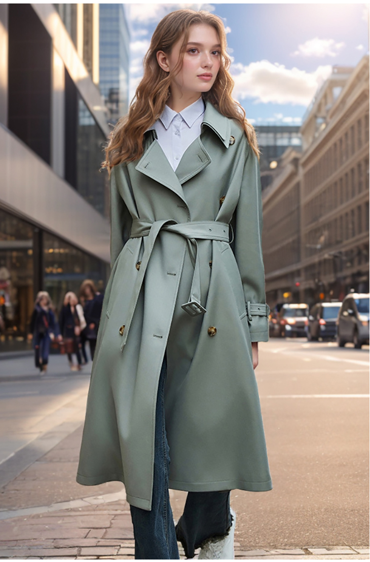 Popular Trench Coat Women 2024 Fall/Winter New Mid-Length Coat Green