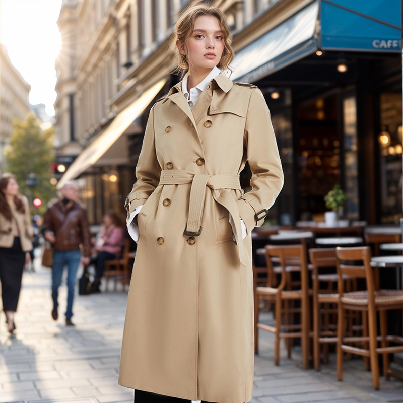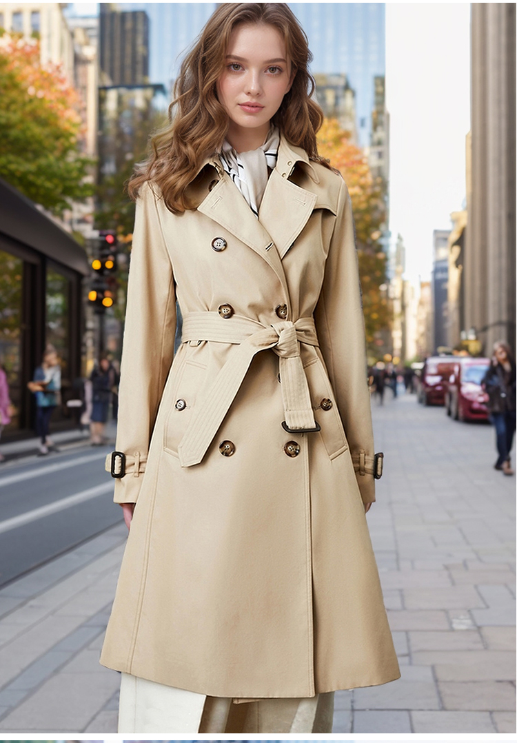 Popular Trench Coat Women 2024 Fall/Winter New Mid-Length Coat Khaki
